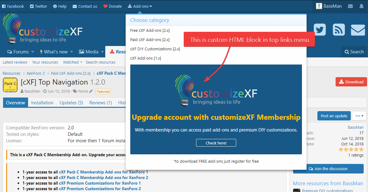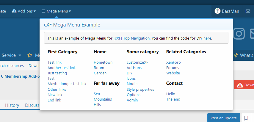 Дополнение добавит дополнительную навигацию в верхней части форума с большим количеством функций и настроек.
