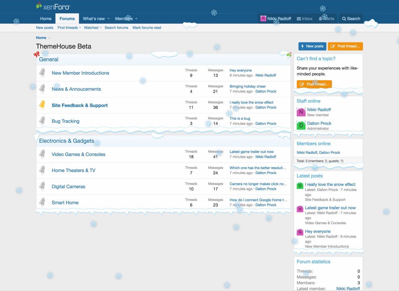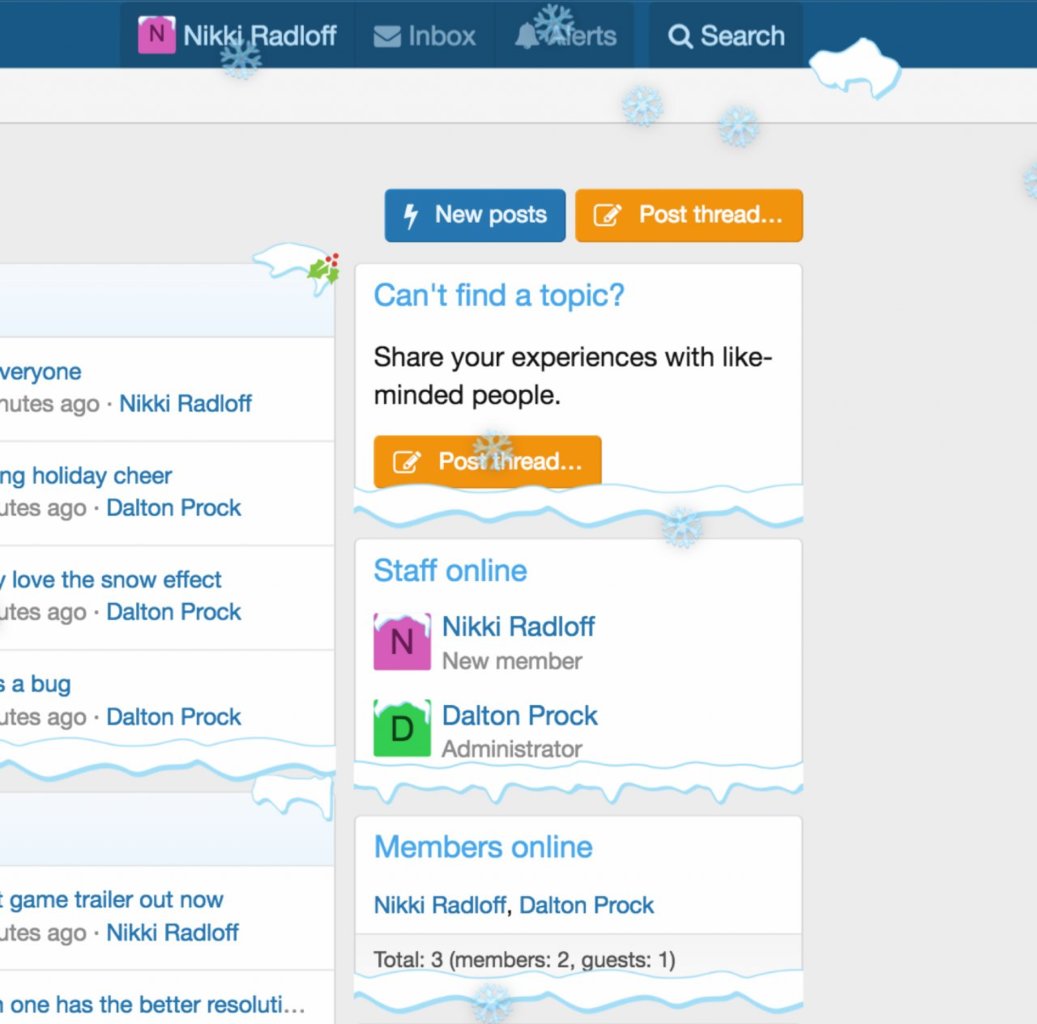 • Добавление эффекта падающего снега, с возможностью изменения как вида снежинок, так и интенсивности их падения
