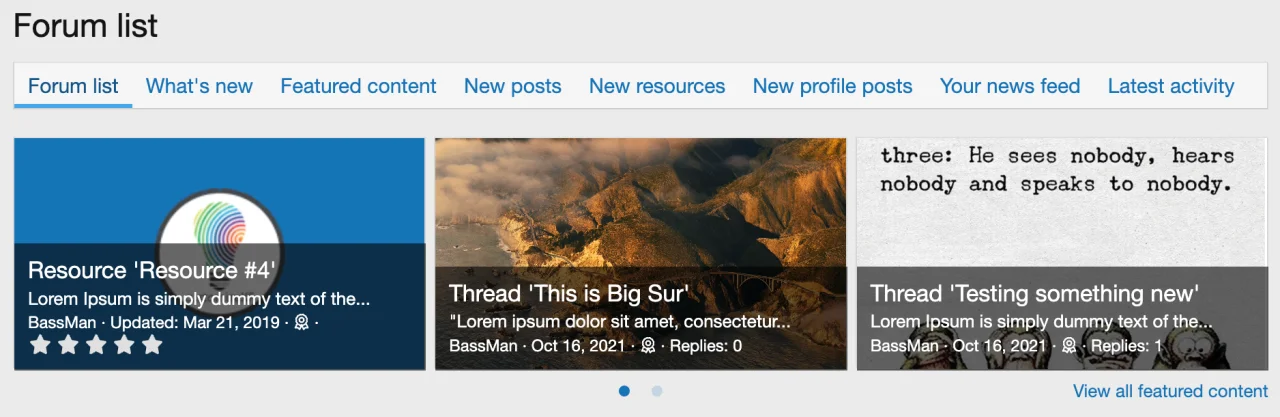 Используйте стандартный виджет карусели избранного контента с некоторыми дополнительными функциями. Главная особенность заключается в выводе изображения из первого поста в карусель.