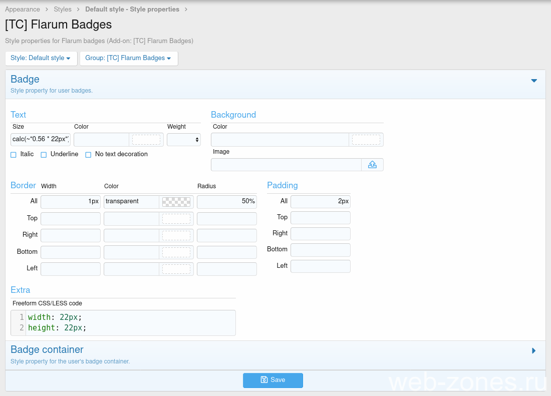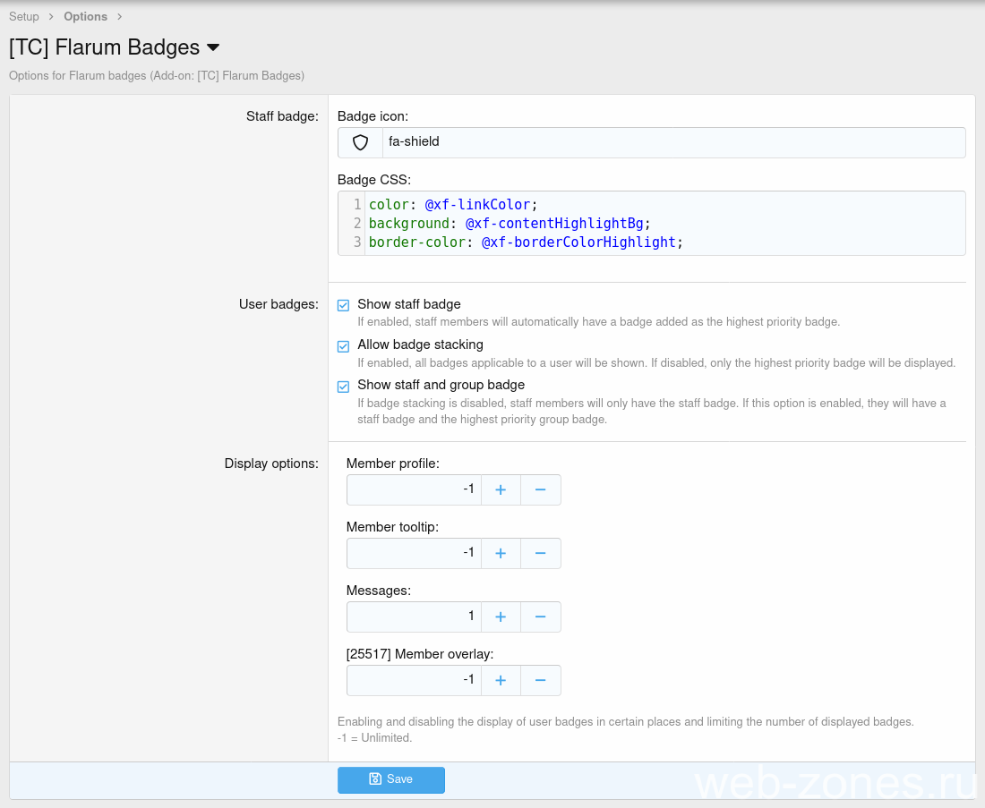 Плагин добавляет возможность создавать значки групп пользователей, подобные значкам Flarum.