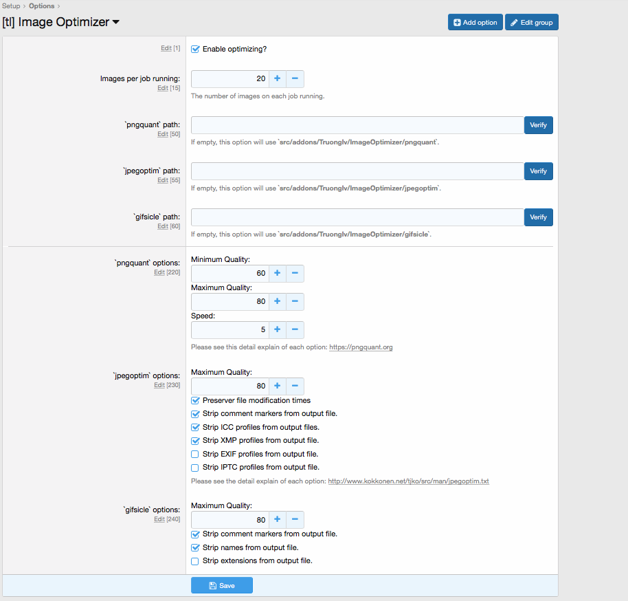 Плагин который обеспечивает мощные настройки в ACP для оптимизации изображений. Перед выполнением оптимизации изображений вы должны установить соответствующую опцию настройки. Все файлы будут перезаписаны, вы не сможете вернуть исходные файлы. Оптимизация всех изображений, хранящихся в XenForo 2, для уменьшения размера.