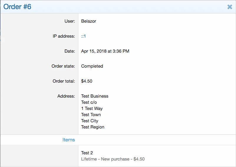 Удобные для пользователя заказы: если заказ не выполнен, пользователи смогут повторить попытку оплаты через страницу своей учетной записи. На этой странице также перечислены все их существующие заказы с возможностью повторной загрузки счета при необходимости. Адресами и лицензиями также можно управлять с этой страницы.