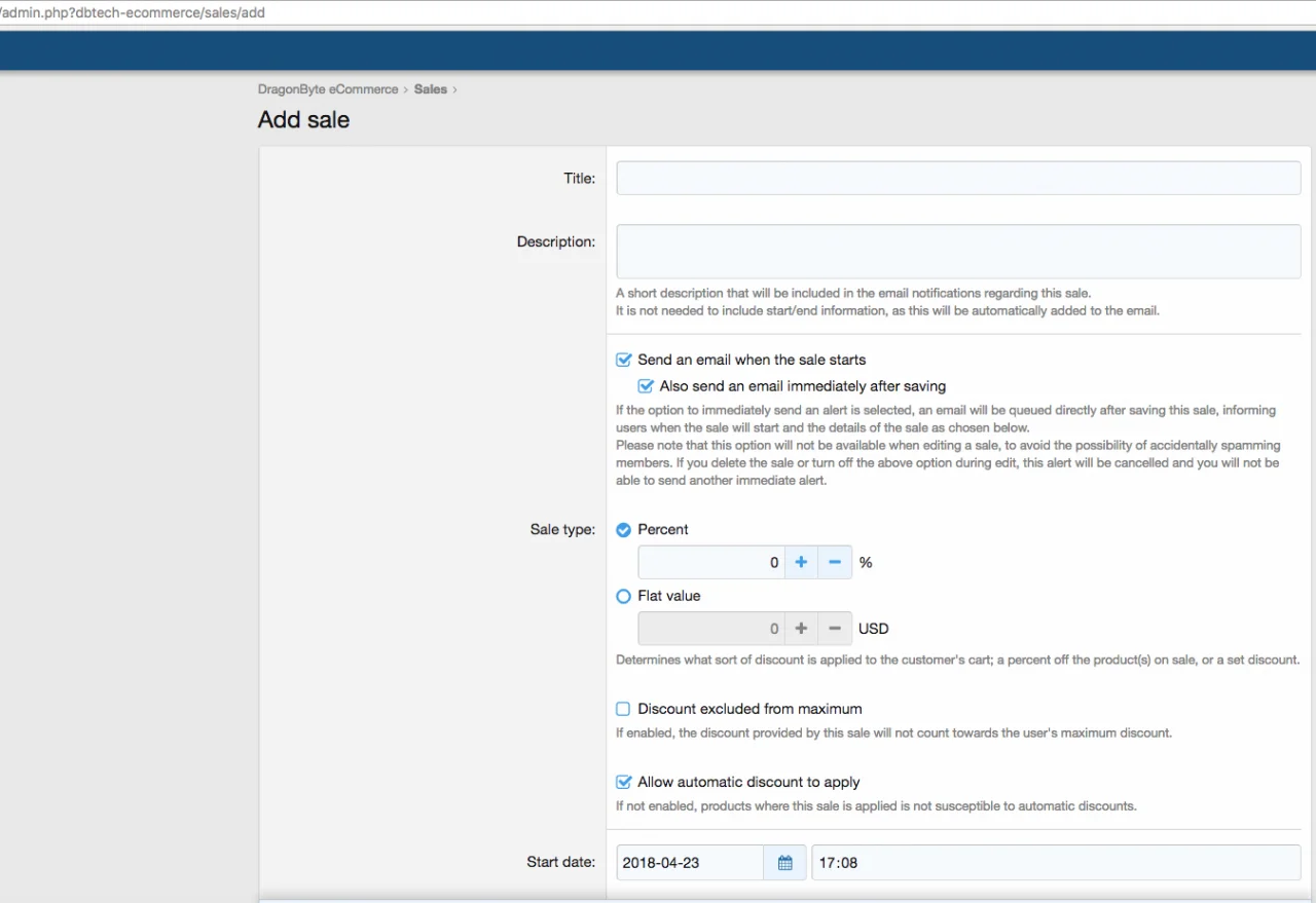 Повторяющиеся продажи: вы можете настроить повторение продаж через определенные промежутки времени или с использованием пользовательских диапазонов дат. Это делает повторяющиеся продажи полезными для продаж, которые происходят в одну и ту же дату каждый год (например, Рождество), и для продаж, которые происходят в разные даты каждый год (например, Пасха).