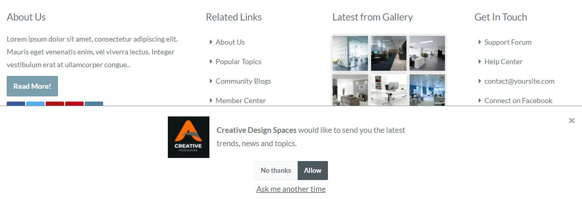 Это дополнение заменяет панель подписки новым стильным всплывающим окном с push-регистрацией в один клик, дополнительным логотипом и четырьмя общими позициями! Таким образом, всплывающее окно будет выглядеть более похоже на то, что мы ожидаем в Интернете, и сделает регистрацию быстрой и легкой!