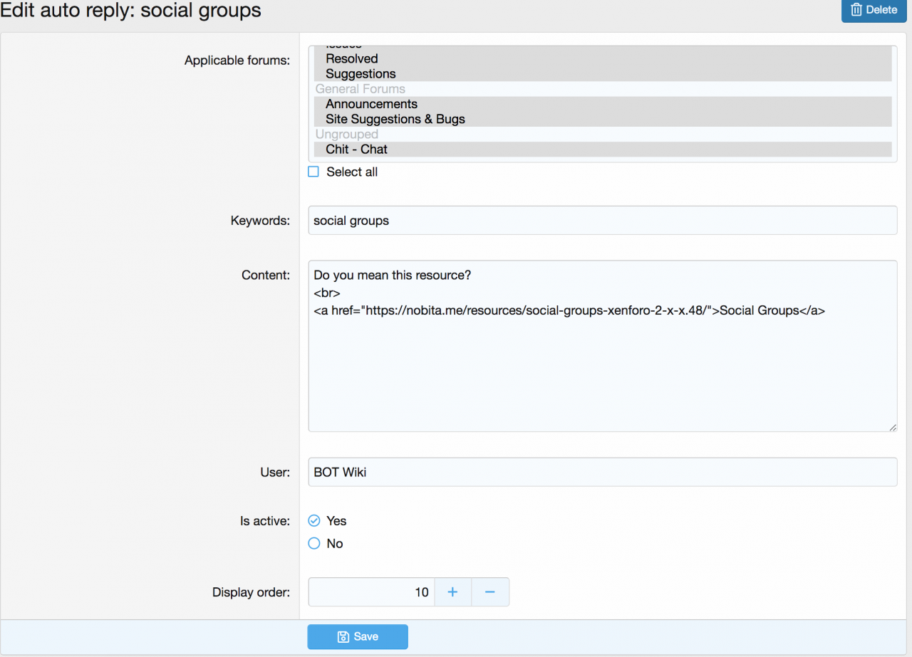 • Можно настроить ответное сообщение для форумов