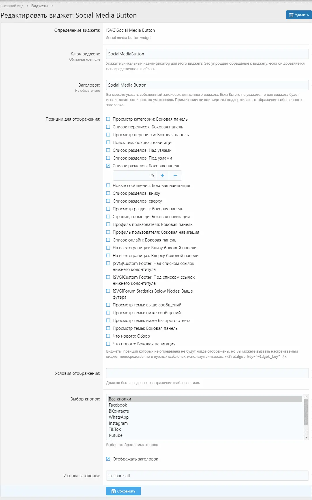 • Возможность использования иконок отличных от Font Awesome, например Плагин - [SVG] Social Fonts Icons - Авторская зона xenforo 2 Skaiman