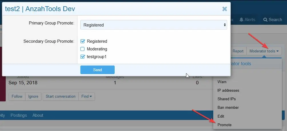 Совместимость с XenForo 2.1.x2.2.x Дополнение позволит администраторам и модераторам повышать и/или понижать пользователей, не заходя в панель управления. Grouppermissions.webp 8.2 КБ · Просмотры: 44 Promotepopup.webp 17.4 КБ · Просмотры: 41 Userpermissions.webp 9.6 КБ · Просмотры: 39