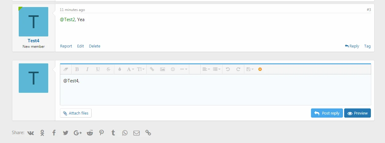 Плагин добавит кнопочку в темы форума, используя которую пользователи смогут быстро обращаться к друг другу по нику.