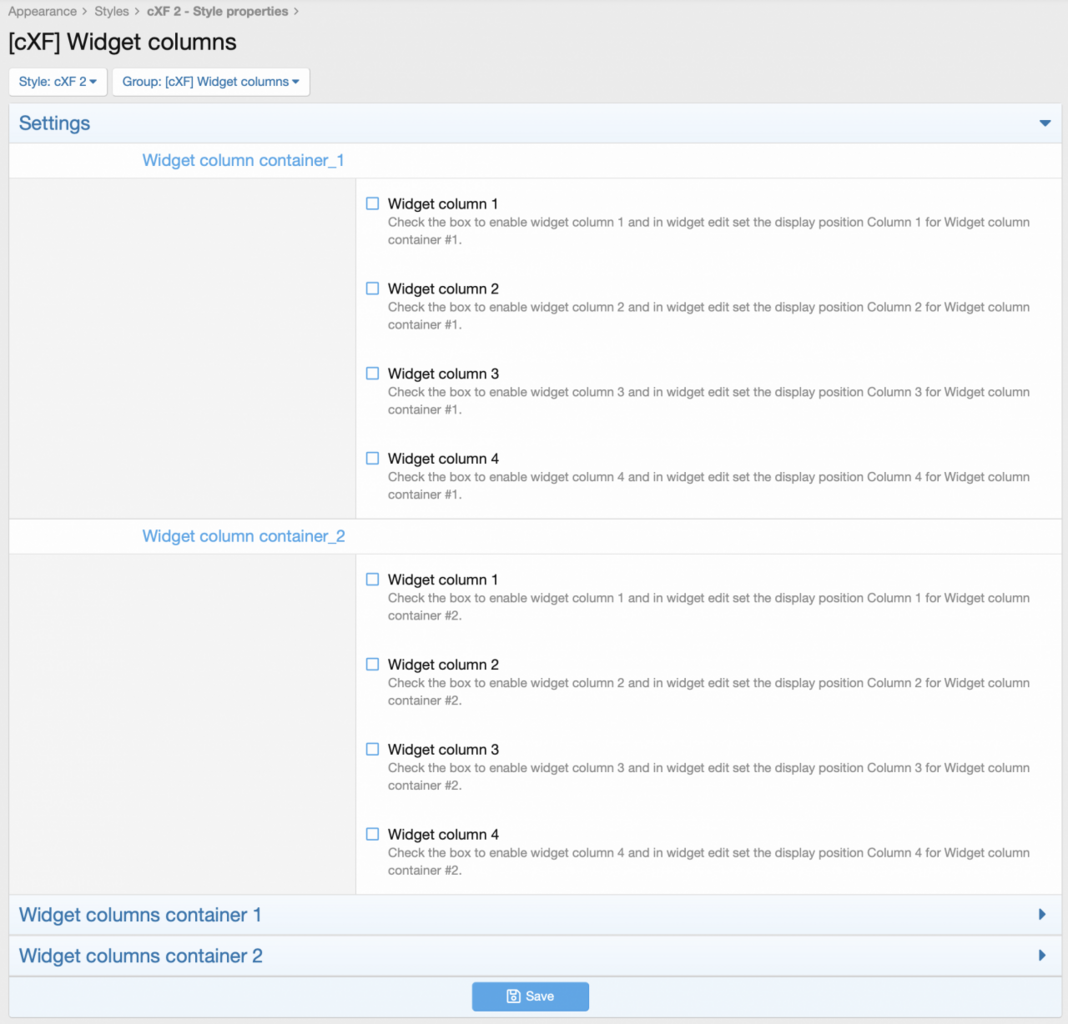 С помощью этого дополнения вы можете легко отображать виджеты в столбцах. Доступно 2 контейнера, в которые можно добавить до 4 виджетов. Таким образом, вы можете легко создать собственную страницу, например, портал с различными виджетами.