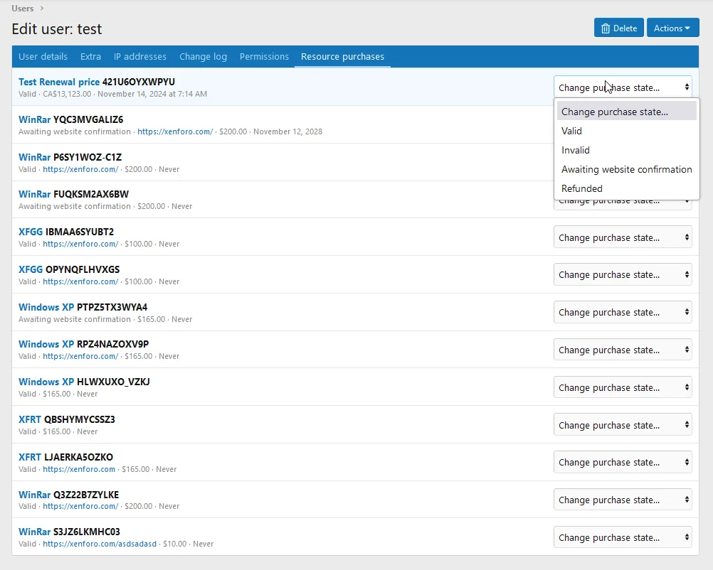 Оповещения о покупках для автора ресурса и членов команды. Также добавлена возможность администратора получать уведомления по электронной почте о любых покупках/продлениях ресурсов.