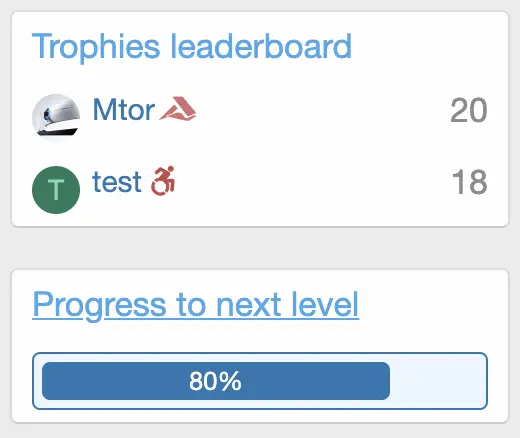- Виджет прогресса следующего уровня на лестнице званий пользователя