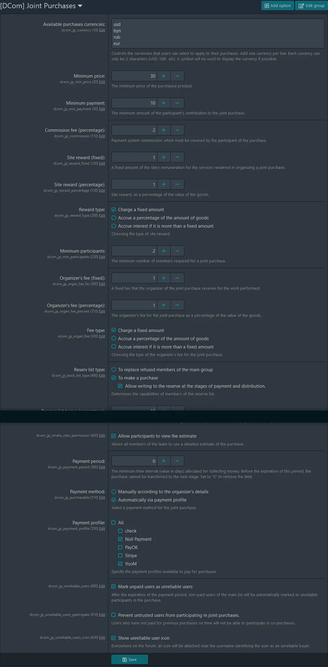 Этот плагин позволит вам организовывать совместные покупки на вашем форуме.