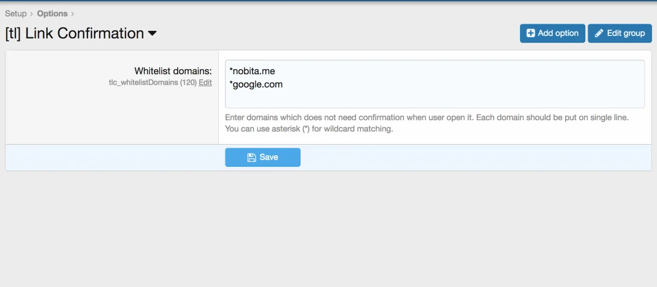 • Подтверждение ссылки: Игнорировать (разрешить определенным группам пользователей открывать ссылки без подтверждения)