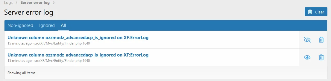 [OzzModz] Ignore Server Errors From Log - Позволяет добавлять ошибки в список исключений.