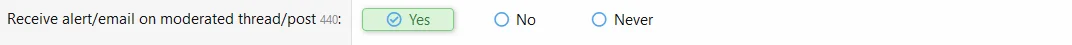 Это простое дополнение, которое будет отправлять выбранным группам команды оповещение и электронное письмо, когда в очереди модерации появляется новая тема/сообщение. Вы устанавливаете это через систему разрешений, в группе "Разрешения модератора форума" есть новое разрешение под названием "Получать оповещение/электронную почту о модерируемой теме/публикации".