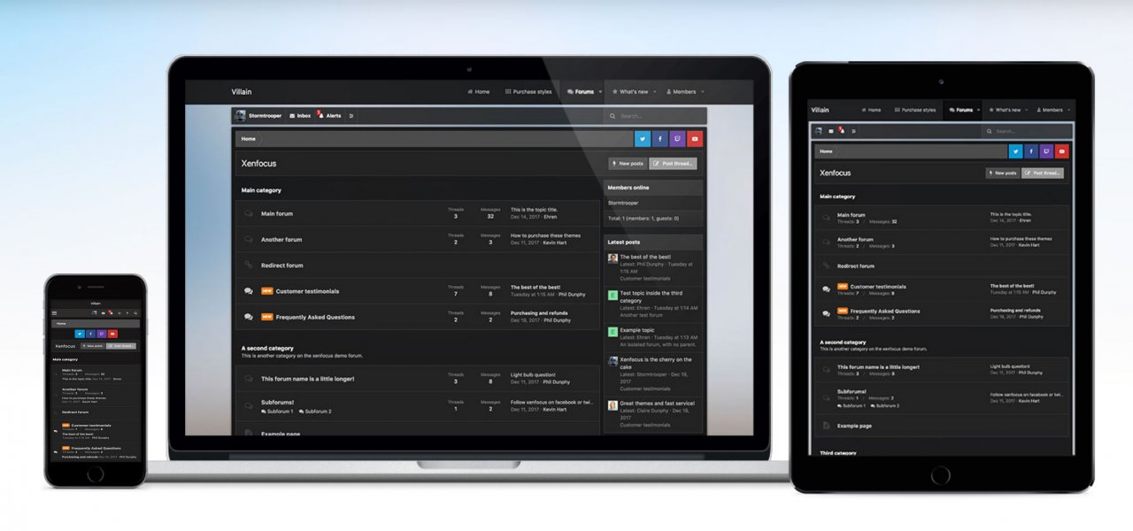 Villain - это темная, полупрозрачная тема, ориентированная на простой выбор фона и фиксированный заголовок. Идеально подходит для любого сообщества, но особенно отлично подходит для игровых сайтов!