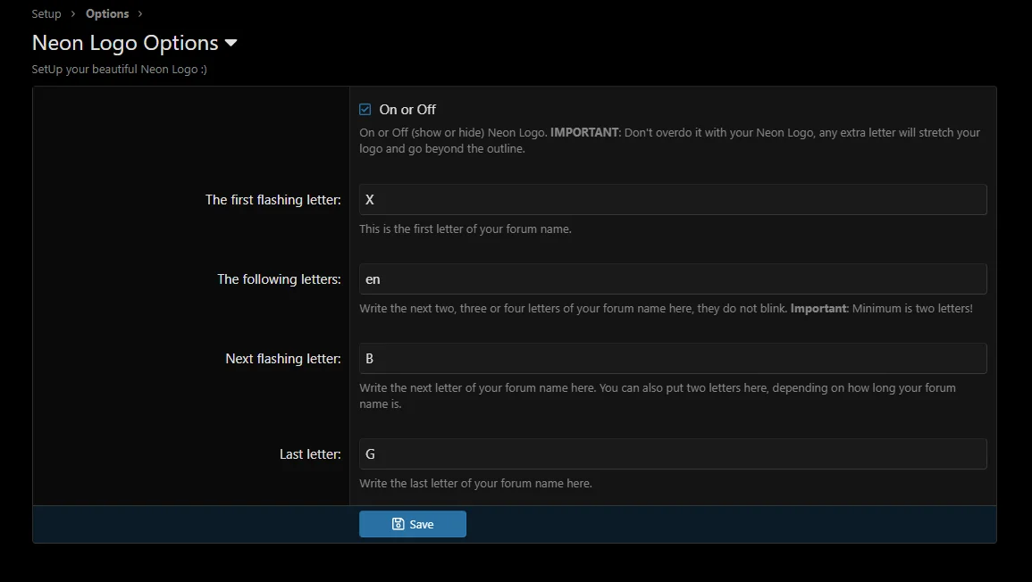 Простая настройка логотипа: просто введите буквы названия вашего форума и все.