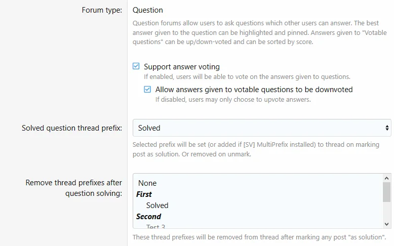 Поддерживает функцию Xon Multi Prefix, а также позволяет удалять определенные префиксы тем после пометки поста как решения.