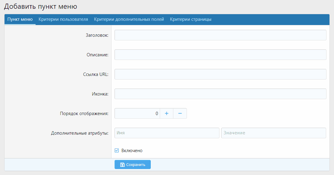 Страница для добавления пунктов меню (общая для обоих)