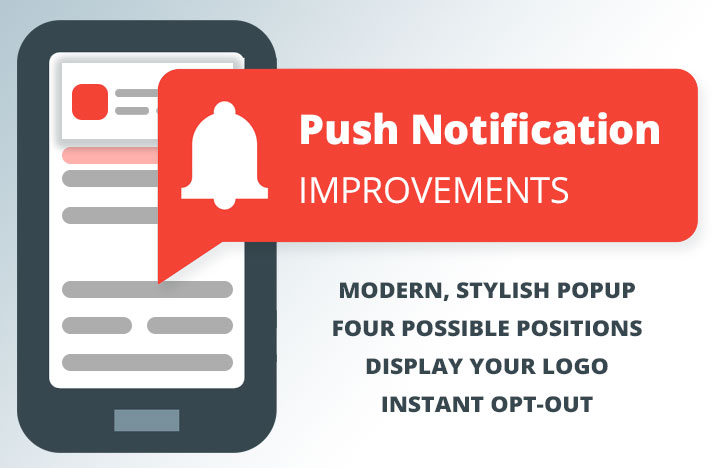 Это дополнение заменяет панель подписки новым стильным всплывающим окном с push-регистрацией в один клик, дополнительным логотипом и четырьмя общими позициями! Таким образом, всплывающее окно будет выглядеть более похоже на то, что мы ожидаем в Интернете, и сделает регистрацию быстрой и легкой!