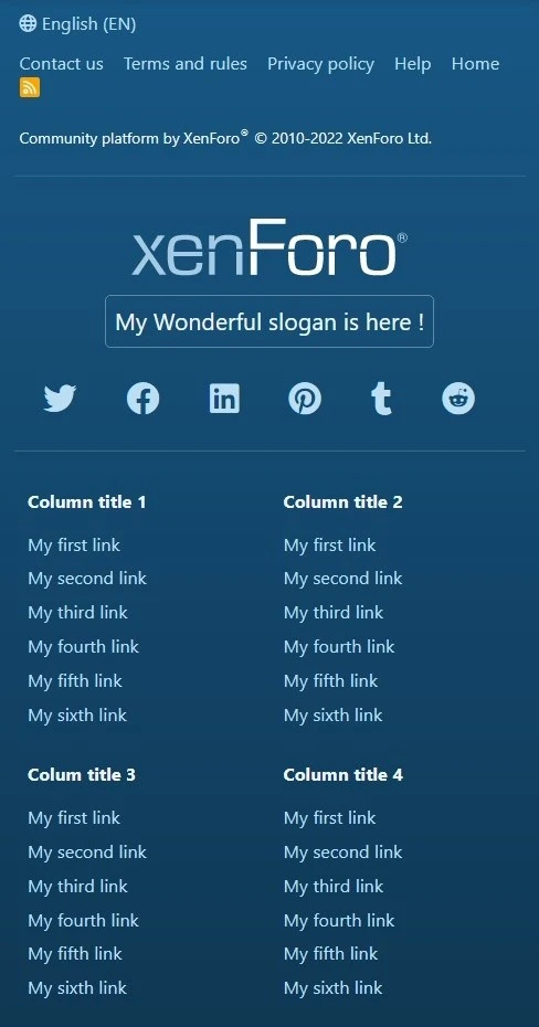 - Возможность удаления ссылок XF (контакты, Политика конфиденциальности, Справка ...)