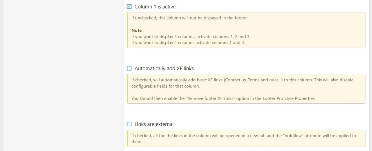 • Возможность автоматического добавления ссылок XF (Контакты, Политика конфиденциальности, Справка ...)