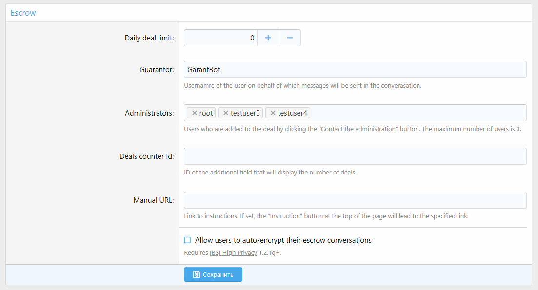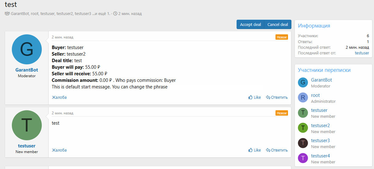 Функционал плагина добавляет авто-гарант через переписки на форуме, с возможностью вывод денег на криптокошелек после оплаты, настройки аккаунта гаранта, администратора, подробная статистика сделок и текущий список сделок.