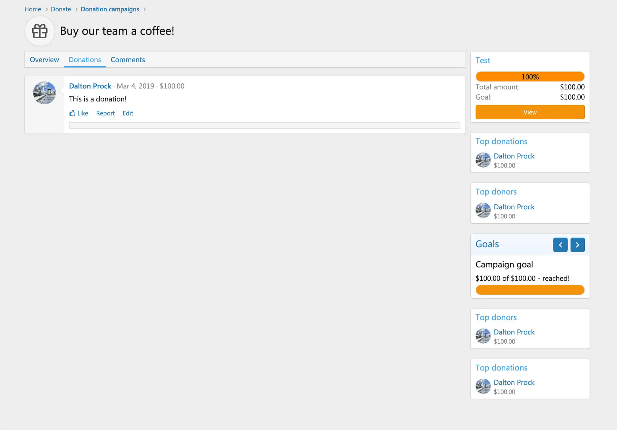 - Создайте несколько виджетов, включая лучшие пожертвования, лучших доноров и призыв к действию в кампании