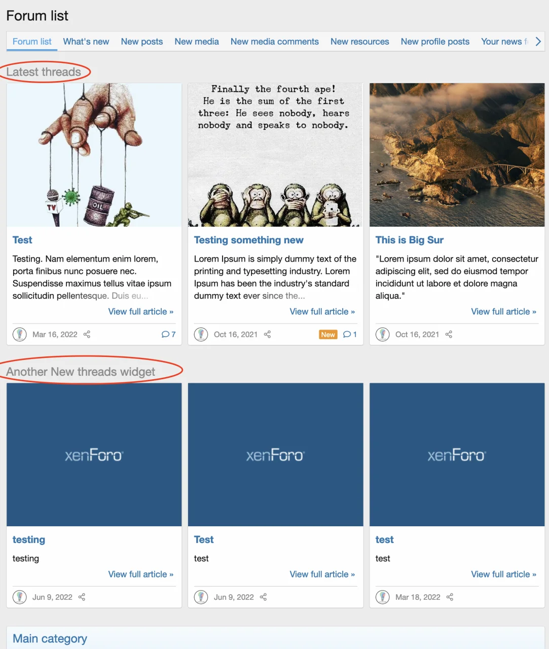 Используйте виджет New Threads в качестве предварительного просмотра статьи с некоторыми дополнительными настройками. Это дополнение расширяет виджет New Threads для отображения тем в более привлекательном виде, чтобы показывать их как избранные темы или любым другим способом, который вы захотите использовать.