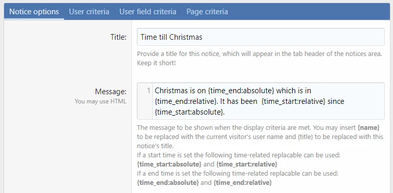Notice Time Replacables - Добавляет replacables для отображения времени начала/окончания уведомления