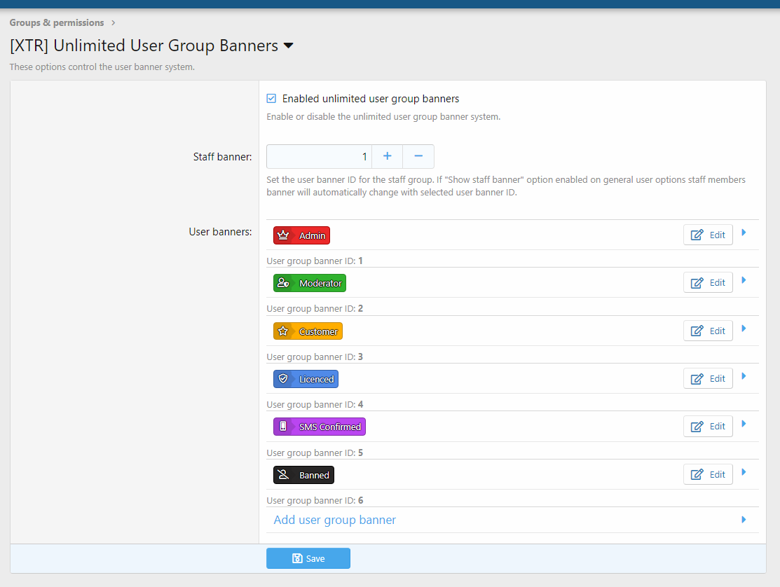 [XTR] Unlimited User Group Banners - Дополнение позволяет создавать стиль баннера.