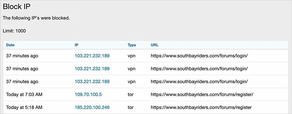 Block IP - Блокирует доступ пользователей VPN, Proxy, Tor и Relay к страницам входа в систему и регистрации.