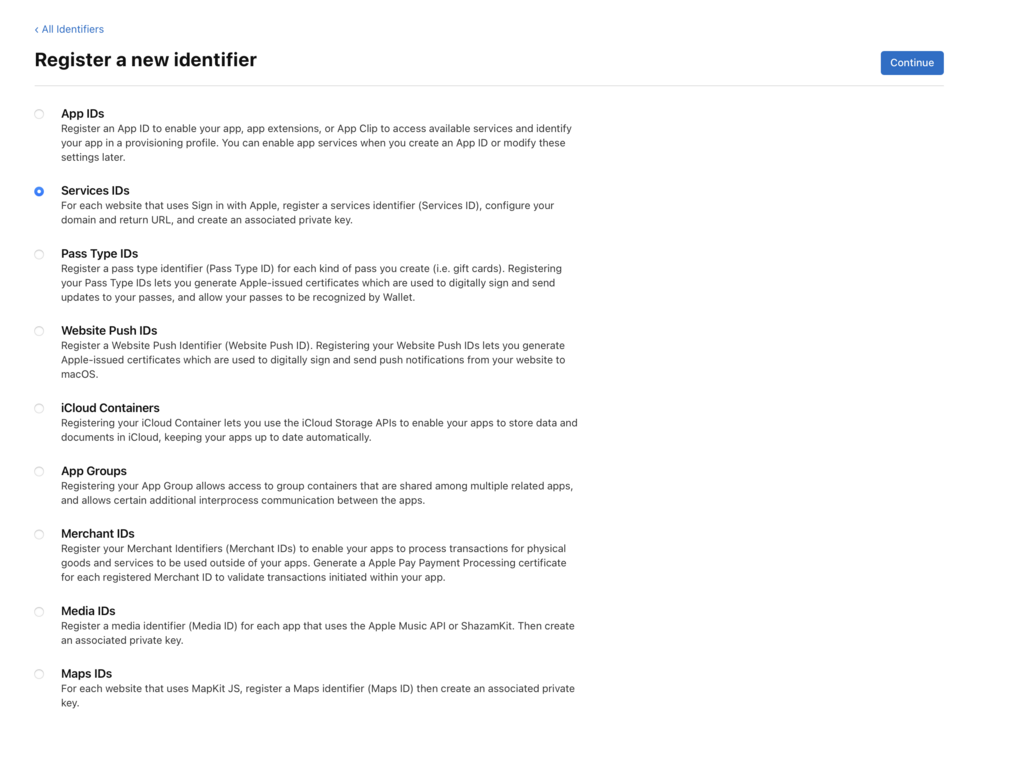 Sign in with Apple - Разрешить пользователям входить в систему или подключать свои учетные записи к учетной записи Apple.